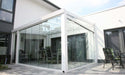 The Giallo widths area 4,5 and 6 metres wide, with a projection of 2.5, 3, 3.5 and 4 metres. Available in four colours: RAL9016 / RAL7024 / RAL9001 / RAL9005. For the roofing you can choose for privacy opaque, clear or ultra clear, and even solar control polycarbonate sheets.